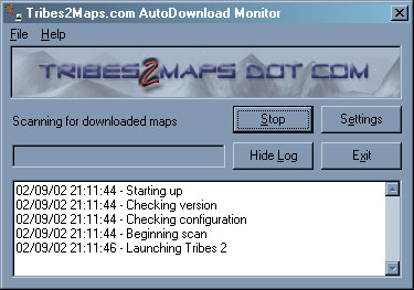 Tribes2Maps.com AutoDownload System [ Screenshots · Download ] Welcome to the first public release of the Tribes2Maps.com AutoDownload System. This is a combination Tribes 2 script and Visual Basic application. The two pieces work together to enable your Tribes 2 client to automatically download maps from www.Tribes2Maps.com when you attempt to join a game server that is running a client-side map which you do not have installed.
